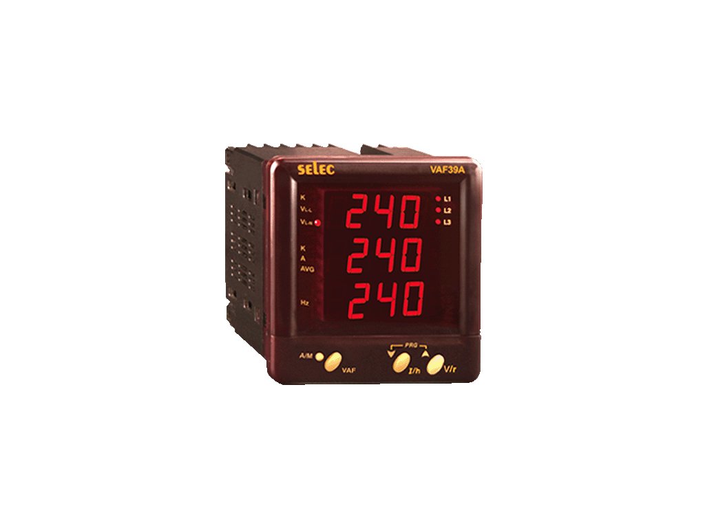 | Vlastnosti | wSdružený panelový přístroj pro měření vstupních el. veličin napětí, proud, frekvence wMěří fázová napětí, sdružená napětí, průměrná napětí - fázové a sdružené wMěří proudy jednotlivých fází a průměrný proud wNa sloupcových indikátorech zobrazuje proud v jednotlivých fázích ve výši 50 - 100 - 150% - jen u VAF 36 wÚdaje jsou zobrazeny ve 3 řádcích po 3 číslech wProgramovatelný převod proudových a napěťových transformátorů wOtáčkoměr wPočítadlo provozních hodin |